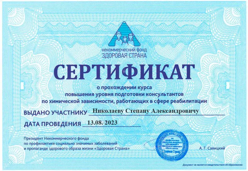 ВыходнойКонсультант по химической зависимости Николаев Степан Александрович помогает мотивировать пациентов с алкогольной и наркотической зависимостью на прохождение лечения и реабилитации. В его задачи входит выявление актуальных проблем пациента, подбор оптимальных условий терапии и анализ динамики лечения.